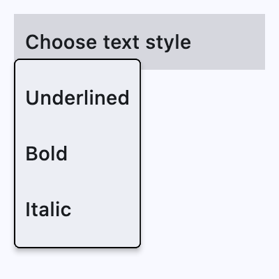 menu_style(MenuStyle | None) –Customizes this menu's appearance.